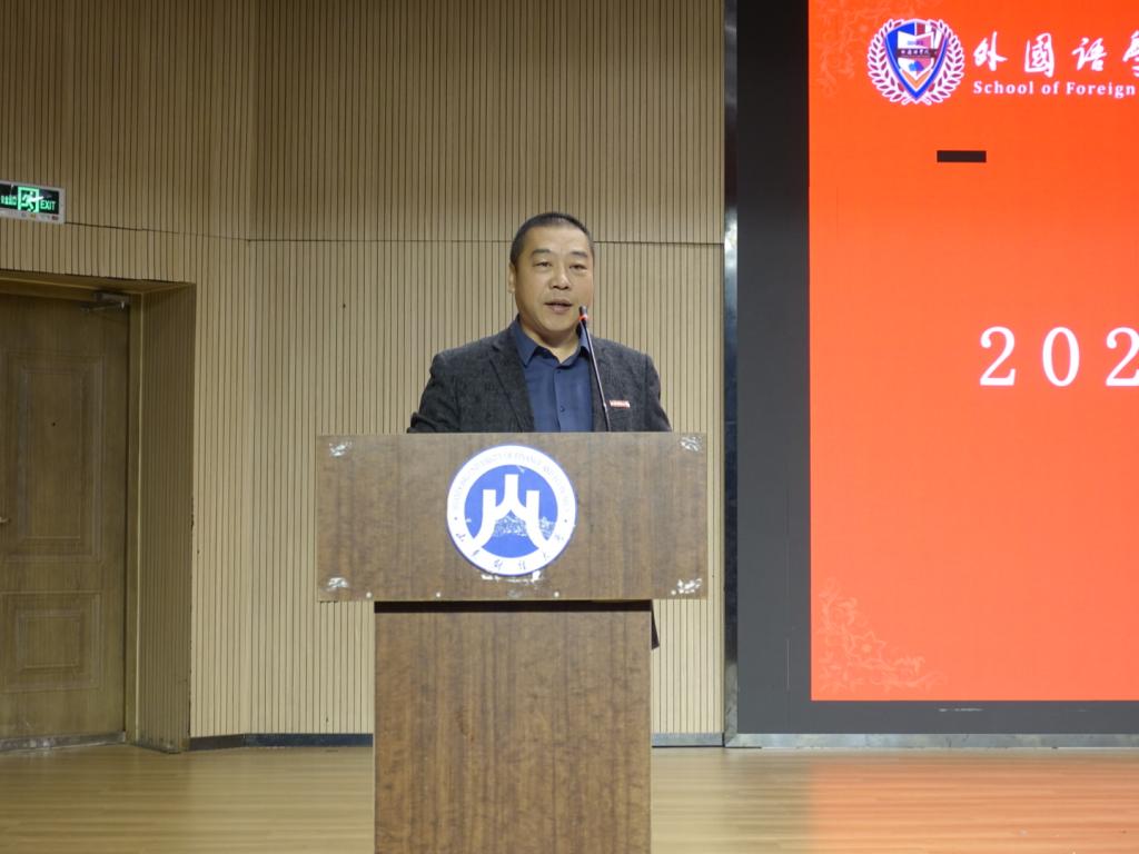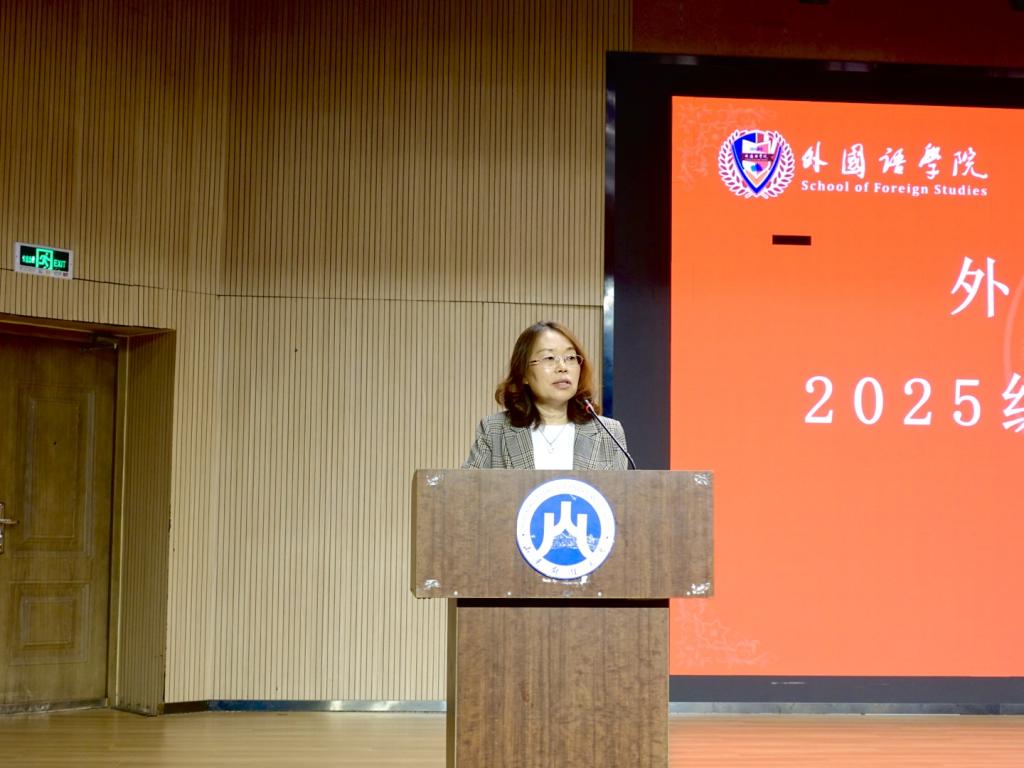 于秀金向2025级新生的到来表示热烈欢迎,他为新生生涯规划提出“外院人的三重赋能”:一是夯实语言根基,培养深度理解力,构建跨文化核心素养;二是促进学科融合,激发创新思维力,成为兼具人文与商业智慧的“外语+”人才;三是胸怀家国天下,践行时代担当力,成为能用世界语言讲好中国故事、参与全球对话的桥梁。最后,他勉励同学们以探索者、连接者和创造者的姿态,在大学生活中书写精彩人生篇章。