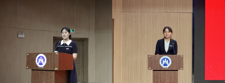 2025级本科生新生代表郭然以真挚的话语,分享了初入山财大的憧憬与期待,展现出新一代外语人昂扬向上的精神风貌,传递出扎根语言学习、探索世界的初心与宏愿,赢得现场阵阵掌声。随后,2023级在校生代表白春璐结合自身求学经历,从学习方法、校园生活等方面分享经验,为新生提供实用指引,鼓励学弟学妹们珍惜时光、脚踏实地,在大学舞台上找准方向、绽放光彩。